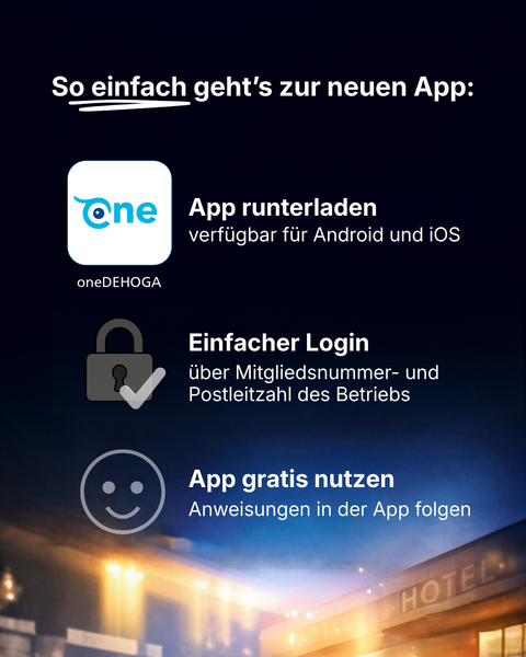 Die neue oneDEHOGA App bietet spürbare Entlastung für Gastgeber im Alltag. Der DEHOGA Rheinland-Pfalz schafft damit gemeinsam mit 14 weiteren Landesverbänden und dem Bundesverband eine digitale Lösung, die Betrieben schnell, verlässlich und praxisnah Zugang zu allen relevanten Informationen und Services des DEHOGA bietet.
