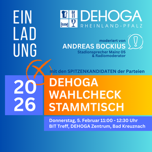 In der Diskussionsrunde beim DEHOGA Wahlcheck Stammtisch haben Sie die Gelegenheit, mit den Spitzenkandidaten und Parteien ins Gespräch zu kommen, Ihre Anliegen direkt zu adressieren, und sich ein eigenes Bild von Positionen und Lösungsansätzen zu bilden.